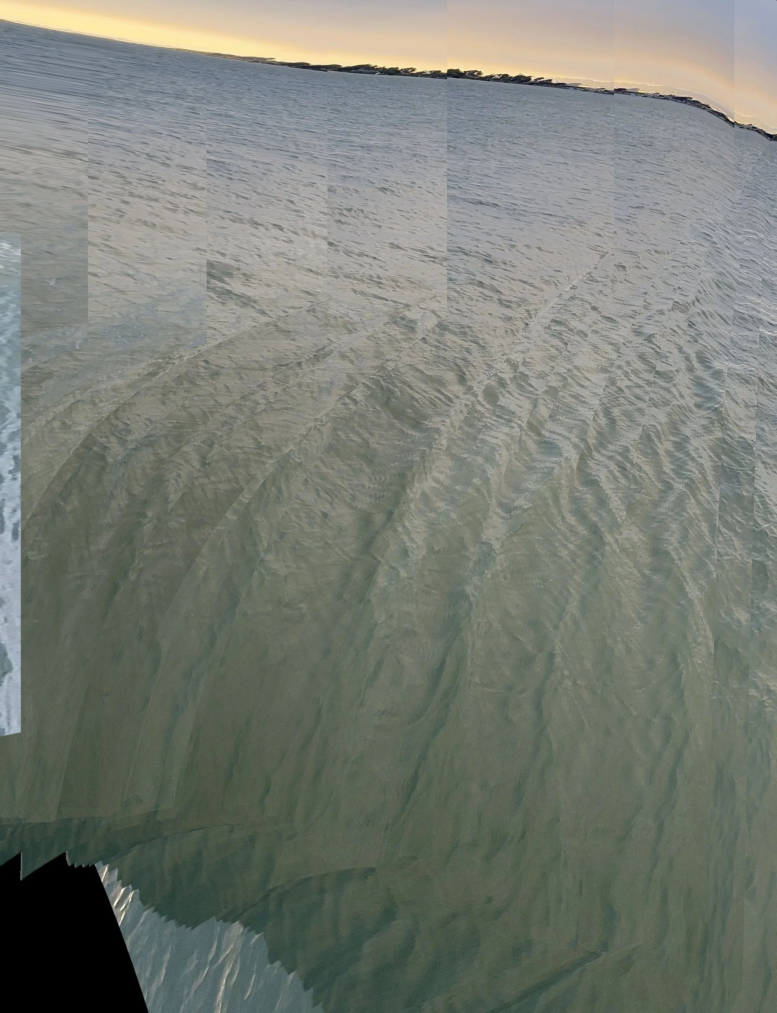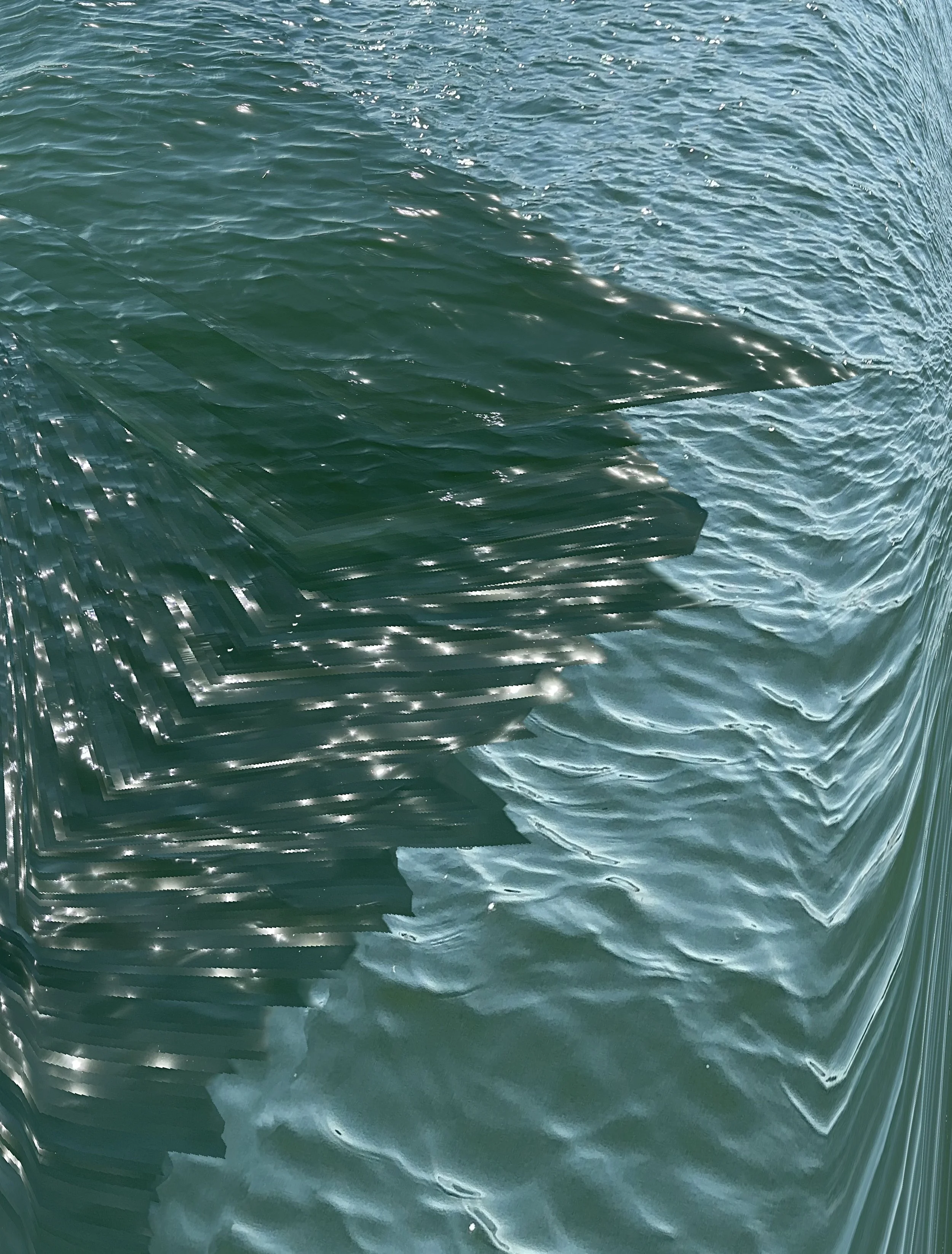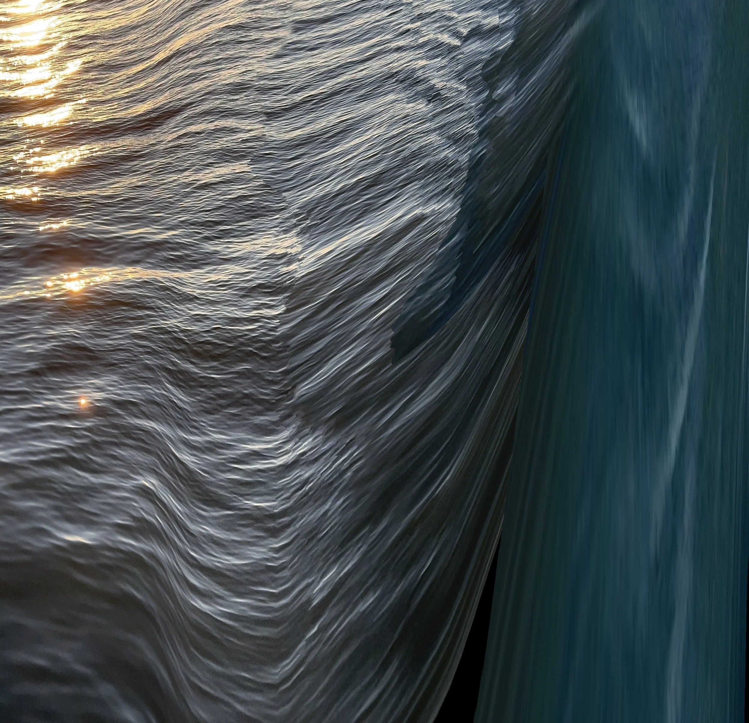 This body of work emerges from an extended practice of experimenting with water, wind, and light - returning to oceans, lakes, and fields across days and seasons to study how their movements might be coaxed into unexpected forms. By working with panoramic imaging technology, l manipulate the pace and angle of capture in relation to these natural rhythms, producing images that fracture into feathered cascades, pinwheels, or layered diagonals of color.