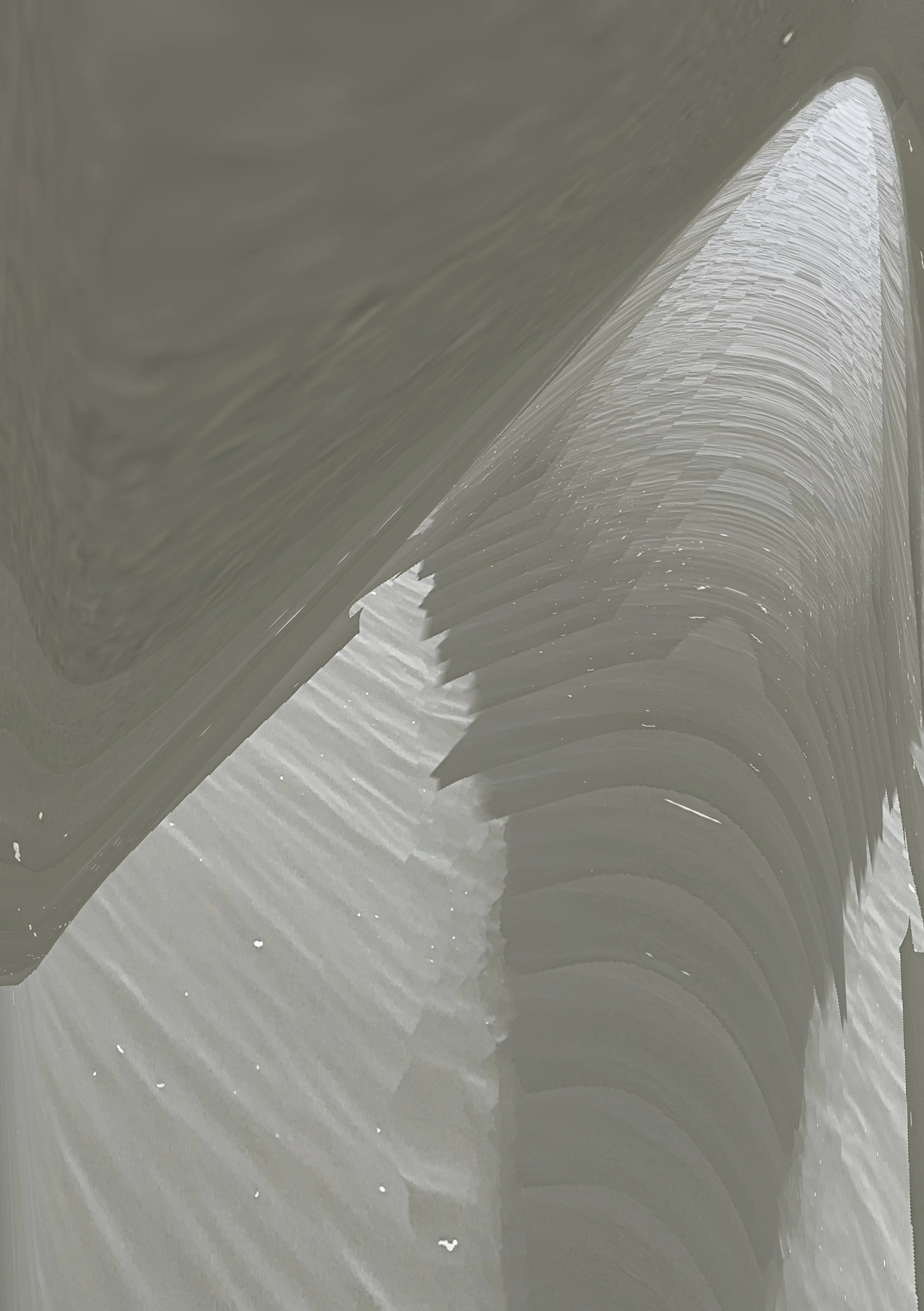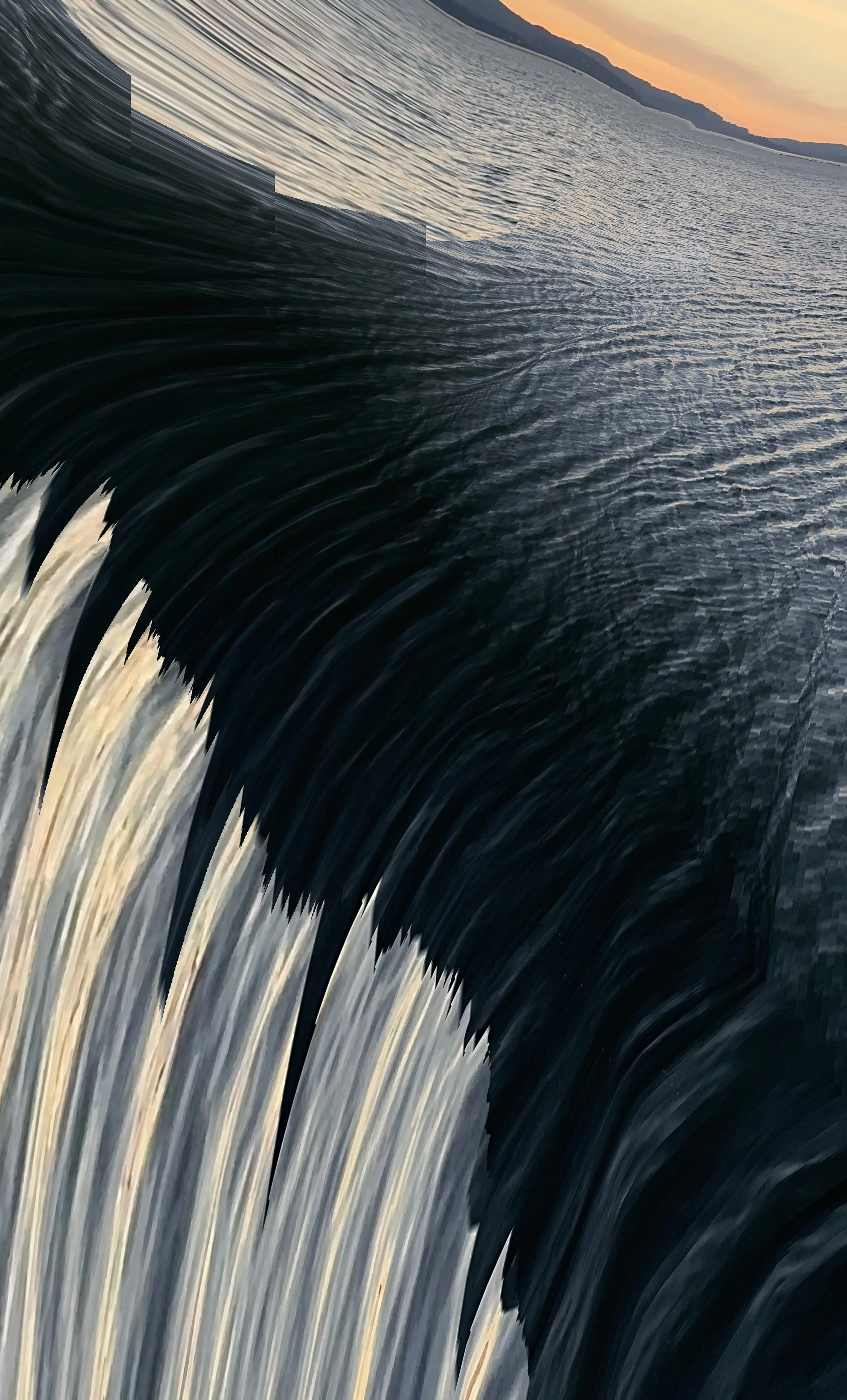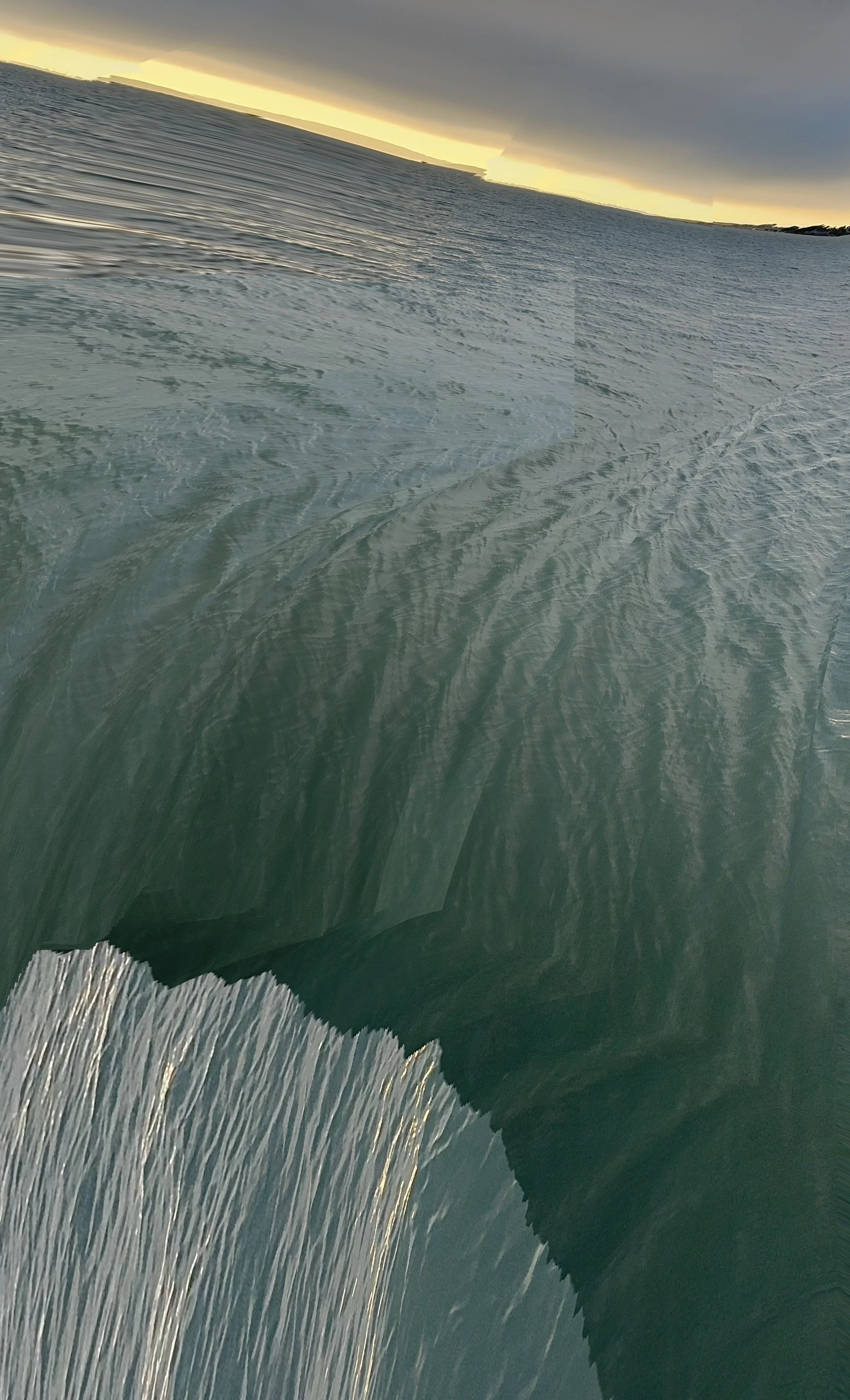 This body of work emerges from an extended practice of experimenting with water, wind, and light - returning to oceans, lakes, and fields across days and seasons to study how their movements might be coaxed into unexpected forms. By working with panoramic imaging technology, l manipulate the pace and angle of capture in relation to these natural rhythms, producing images that fracture into feathered cascades, pinwheels, or layered diagonals of color.